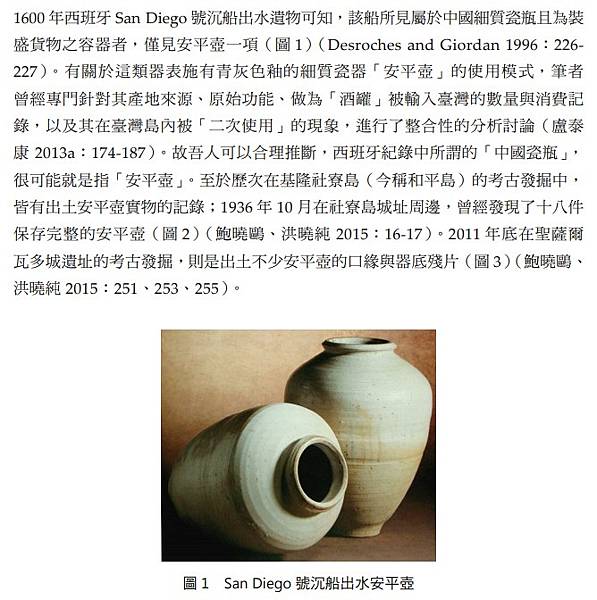 盧泰康,〈十七世紀前半西班牙人在北臺灣的陶瓷貿易〉,《從史前到歷史-臺灣東半部的文化樣相》,臺北:中央研究院歷史語言研究所,2020年12月,頁241-282。.pdf (tnnua.edu.tw)