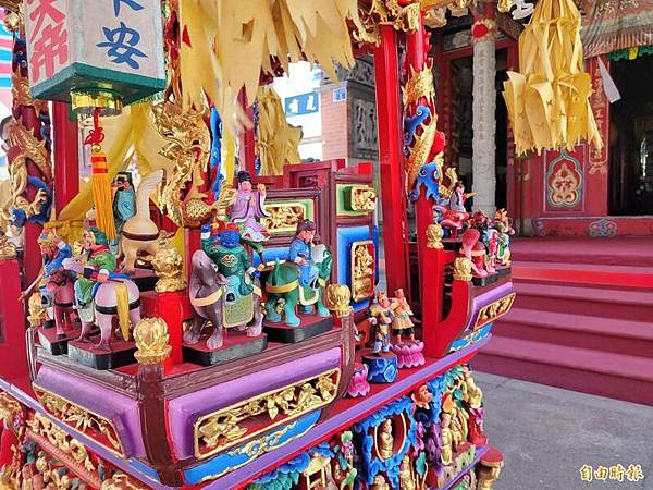 安平妙壽宮「尪仔轎」36官將雕工精細。(記者王姝琇攝)