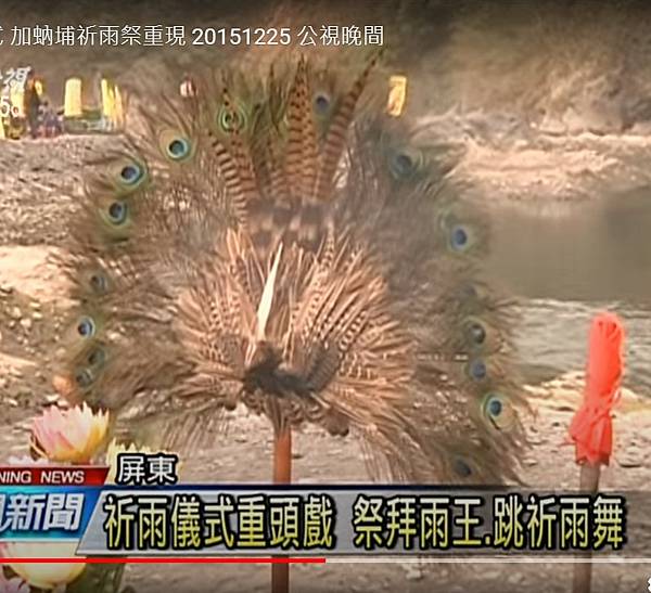 高樹加蚋埔昨天重現十多年未辦的祈雨祭,祈雨祭壇上的「雨王」是加蚋埔獨特祭器,馬卡道族人以鷹鷺等鳥類羽毛編成扇子狀,用來向雨神傳達願望,珍貴祭器現身也讓現場快門聲起此彼落,拍下難得的畫面。