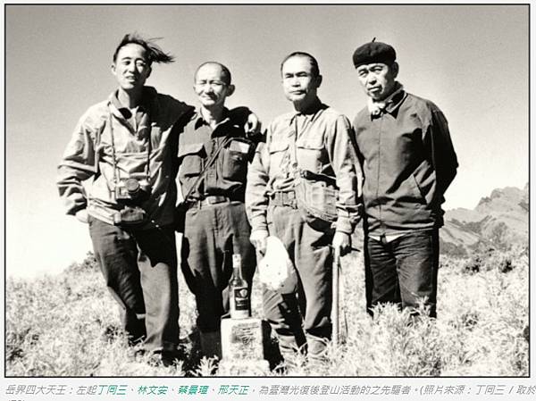 岳界四大天王:左起丁同三、林文安、蔡景璋、邢天正,為臺灣光復後登山活動的之先驅者。(照片來源:丁同三 / 取於網路)