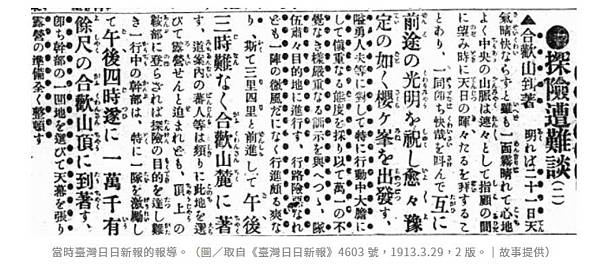 當時臺灣日日新報的報導。(圖/取自《臺灣日日新報》4603 號,1913.3.29,2 版。|故事提供)