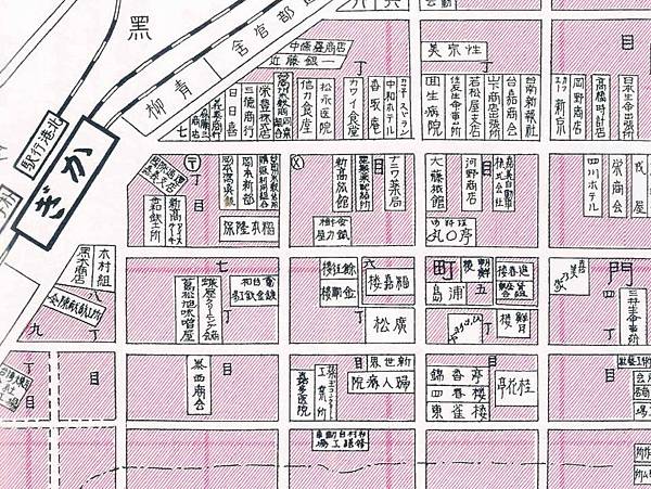 圖:昭和14年(1939)的「嘉義市町名圖」中,可見「遊廓」所在。