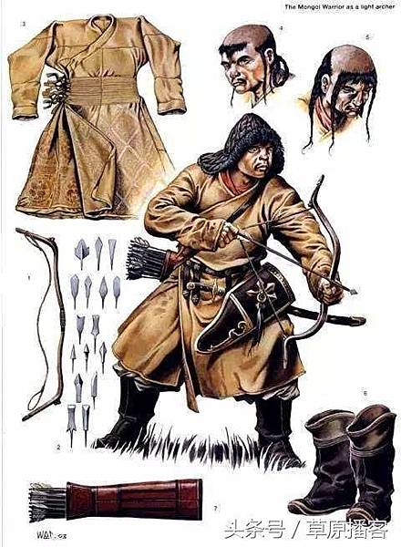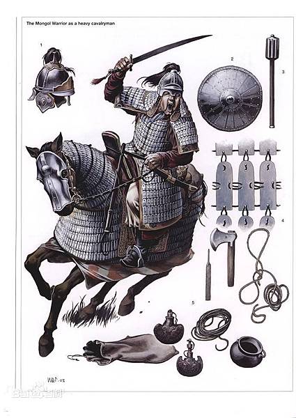 蒙古騎兵有1/3重騎兵,2/3輕騎兵,輕騎兵主要的武器是弓箭,刀是自衛用的,1/3重騎兵雖然人數少卻是蒙古賴以崛起的精華,比如在對王汗和乃蠻部的戰爭中都是以重騎兵利用混戰發動決定性衝擊取得勝利的,如果光憑射箭,老成人比誰都少,不讓別人統一了就不錯。蒙古重騎兵的主要武器是一種鐵制標槍,長三米,可以投,一頭是槍尖,尾部是一個小圓錘和一個刺,另外蒙古騎兵也用金人用的狼牙棒、蒲刀一類的武器。