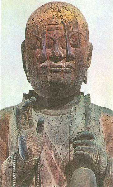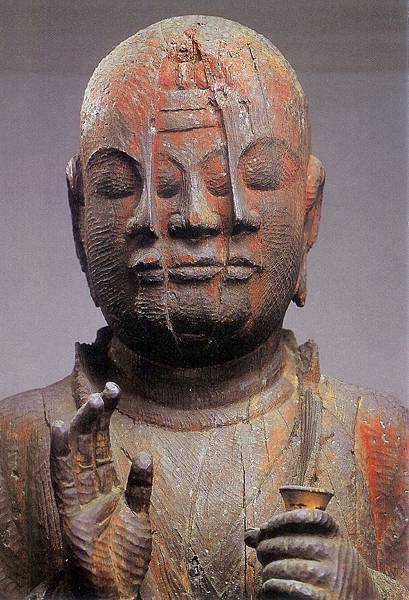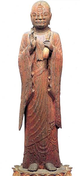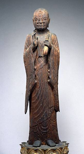 2.寶志禪師像,平安時代(11世紀),木造,高160.9釐米,日本京都西往寺藏,現寄存於京都國立博物館