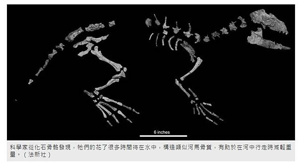科學家從化石骨骼發現,牠們的花了很多時間待在水中,構造類似河馬骨質,有助於在河中行走時減輕重量。(法新社)