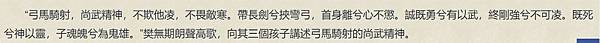 “弓馬騎射,尚武精神,不欺他凌,不畏敵寒。帶長劍兮挾彎弓,首身離兮心不懲。誠既勇兮有以武,終剛強兮不可凌。既死兮神以靈,子魂魄兮為鬼雄。”朗聲高歌,弓馬騎射的尚武精神。