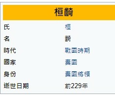 桓齮:桓齮(yǐ ):本為秦將。秦始皇十一年(前237年),桓齮與王翦和楊端和攻趙, -華人百科