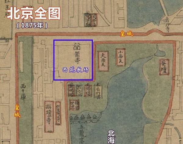 光緒元年(1875)北京全圖上的西苑教場,圖源網絡。