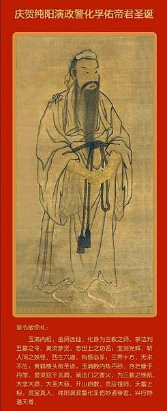 宋代封呂洞賓為妙通真人,元代奉為"純陽演政警化孚佑帝君,道教尊稱為呂祖,全真奉為北五祖之一,呂祖的誕辰是四月十四曰。