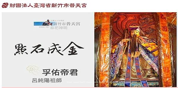 新竹普天宮孚佑帝君(孚佑帝君也是八仙過海中的「八仙之一」呂洞賓)