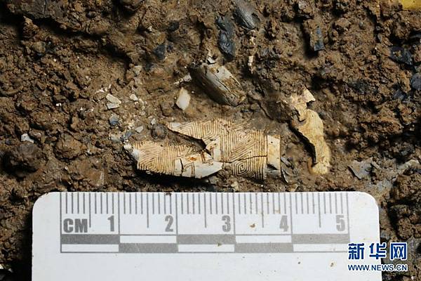 這是在三星堆遺址考古發掘現場5號「祭祀坑」內出土的象牙雕刻殘片(資料照片)。 新華社發 (四川省文物考古研究院供圖)