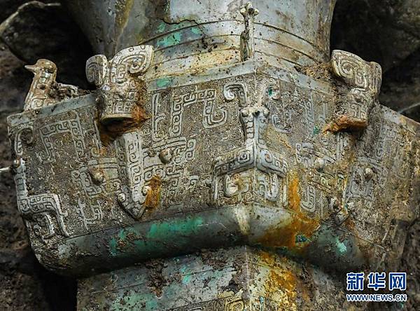 三星堆考古發掘現場8號「祭祀坑」發現的青銅神獸。(圖擷取自網路新華網)