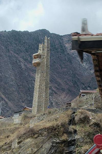 沿路峻嶺稜線制高點,都能看到千年以上的舊碉樓,碉樓高約五層樓至十層樓都有,以當地石材堆砌,汶川大地震竟未倒塌,碉樓有射口,瞭望警戒數十公里,能向其他碉樓以狼煙傳遞烽火戰況訊息。彷彿看到商高宗武丁愛妃,率三萬鐵騎從殷都越過河南、湖北、陝西,高舉八公斤重閃著冷光的銅鉞,直奔羌族、古巴國、古蜀國(係沿黃河而下巴蜀之古羌族),殺將而來,一陣血腥,血流漂櫓,婦好大勝而返,羌族俘虜運返殷都與牛豬羊一同畜養,一年百多個各式祭典,宰羌俘首級與三牲一同祭祀。