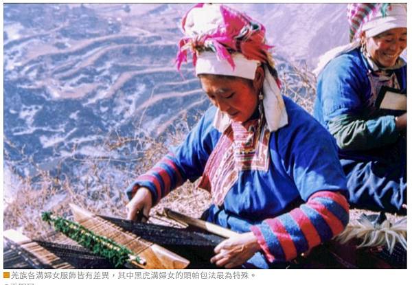羌族各溝婦女服飾皆有差異,其中黑虎溝婦女的頭帕包法最為特殊。