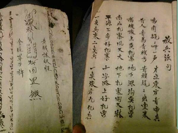 諱與符的區別在於:符是書寫刻印在紙、絹木等物上面的;而諱是在儺堂「劃」出來的,凡在儺堂中,「端公」用香、手、司刀、卦子。令牌等比劃時,都是在劃諱。
