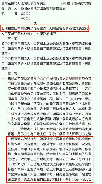 花蓮地方法院新聞稿指出,被告李義祥違反停工期間而施工,且駕駛吊卡大貨車因故障熄火後在本件事故發生前,未通報台鐵或請求適當救援,與被告華文好操作非其業務職掌的機械進行拖吊業務,為本事故肇事原因,而義祥工業社為被告李義祥合夥事業、東新公司則為K51標案承包商並以被告李義祥該工程的工地主任,均應與被告李義祥連帶負責。