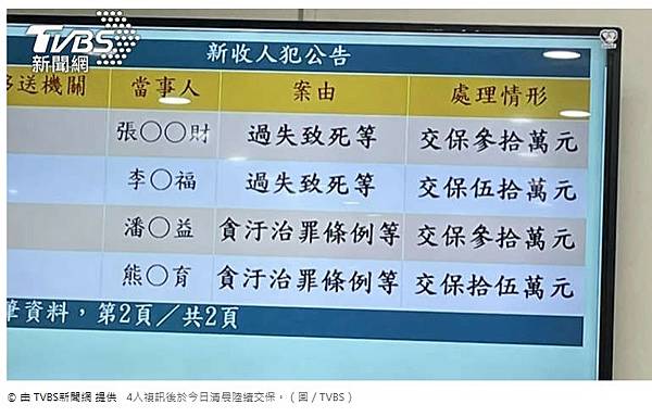 今日花蓮地院一審宣判,李義祥遭判過失致死5年、採購法3年,合併判處7年10月,至於肇逃部分無罪;華文好肇事逃逸無罪;林長清2年8月;潘堂益8年10月,為9名被告中判刑最重;郭國振4年2月;黃平和2年6月、黃文利10月;李進福7年2月;張齊富財4年6月。另東新營造違反《政府採購法》,判罰100萬元,扣案所得337萬餘元沒收。太魯閣號出軌49死悲劇 李義祥8罪遭判7年10月│台鐵│死傷│TVBS新聞網 https://bit.ly/3tmqDDt