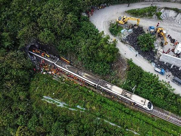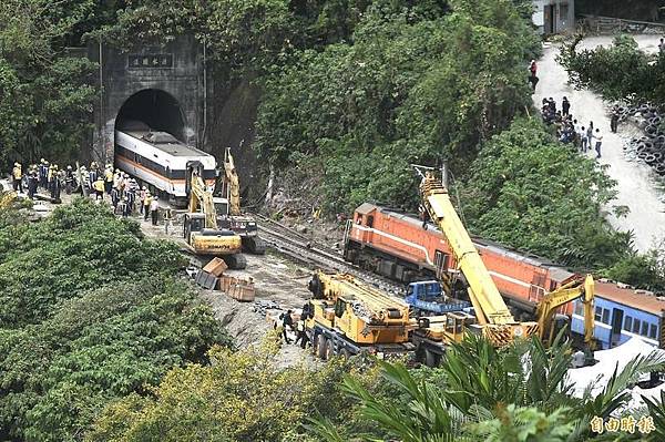 4月2日台鐵第408次車,由樹林開往台東之太魯閣自強號列車,撞上滑落邊坡的工程車,共49人罹難,213人受傷(資料照)