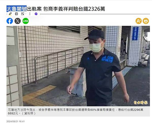 太魯閣號出軌案 包商李義祥判賠台鐵2326萬 - 社會 - 自由時報電子報 https://bit.ly/4dSD13m