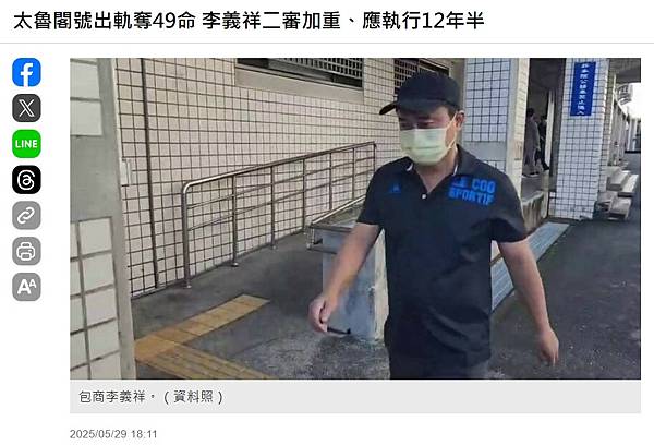 太魯閣號出軌奪49命 李義祥二審加重、應執行12年半 - 社會 - 自由時報電子報 https://bit.ly/3T2lE7y