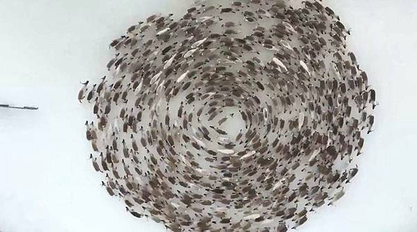 綜合外媒報導,俄國攝影師費多謝耶夫(Lev Fedoseyev)3月24日在俄羅斯西北部的摩爾曼斯克州「Lovozero」村,使用無人機拍攝當地圈養的馴鹿群,而當時正有獸醫準備替牠們施打炭疽疫苗,不料這些鹿看見獸醫現身,立刻啟動自衛機制,當場繞起圈子形成巨大漩渦,讓多謝耶夫相當訝異。