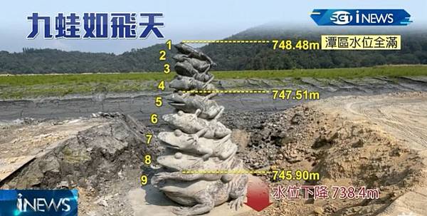 9.海拔745.90公尺(最下面一隻青蛙的頭頂高度) 影/九蛙飛天了!日月潭水位探底 水情指標6月可完工 | 中彰投 | 地方 | 聯合新聞網