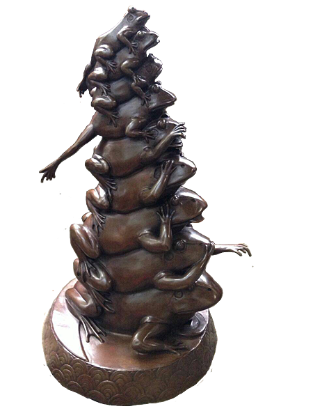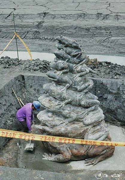 九蛙疊像的小故事---九蛙造型是青境公司呂兆良先生設計,並委託日月潭地區知名藝術家沈政瑩先生塑造原型。九蛙出水