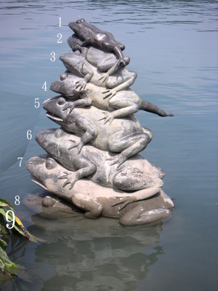 「九蛙疊像」每隻青蛙頭頂所表示的水位高度