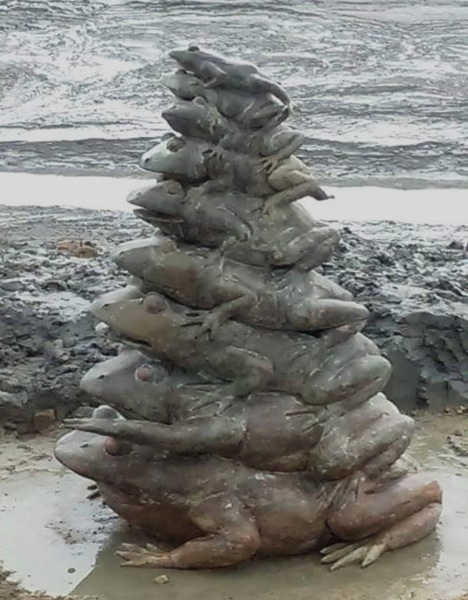 根據中水局資料,日月潭水庫若蓄水率降到90%,水位高度746.82公尺,露出7蛙。一名遊客今天到日月潭旅遊,即拍到九蛙疊像明顯已露出8隻蛙,水線貼近最底下蛙像。