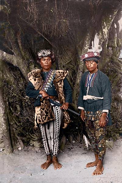 兩位身穿珍貴雲豹裘衣的排灣族貴族