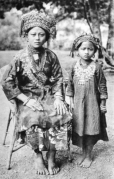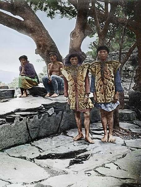 三位穿戴珍貴雲豹裘皮的排灣族貴族之原狀照片