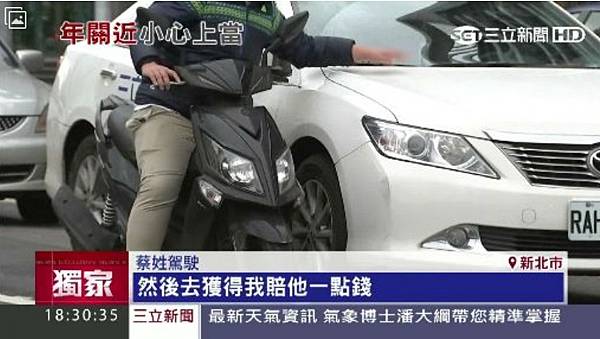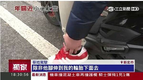 假車禍詐財新招!騎士「貼身」控車輪輾腳│三立新聞台 ID-442649