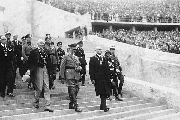 希特勒(中)出席1936年的柏林奧運。 圖/維基共享