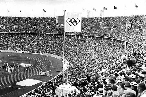 戰前的奧運當中,議論最多的或許是1936年柏林奧運,當年德國在希特勒的主政下,將之視為宣傳納粹德的最好時機,不但投注大量財力人物擴大舉辦規模,更由女性導演蘭妮・萊芬斯坦(Leni Riefenstahl)拍成奧運會史上第一支紀錄片《奧林匹亞》(該紀錄片分為《民族的祭典》與《美的祭典》兩部)。