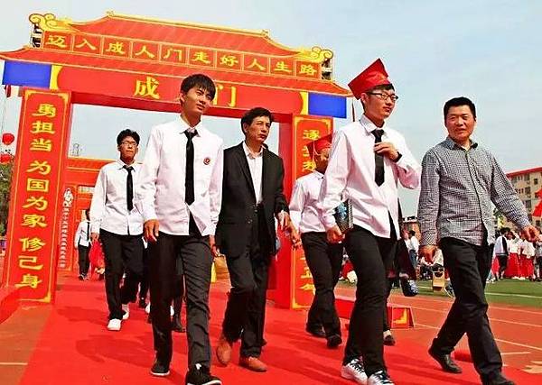 因為中國人的法定成人年齡在18周歲,這個時期多半會在上學的高中舉辦一場規模盛大的「成人禮」,由於他們的年級一般在高三,大部分高中會將「成人禮」和「高考誓師大會」聯繫在一起。