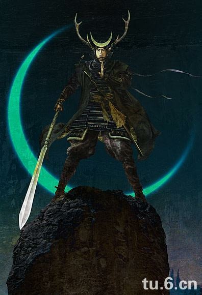 一次與兄長一起被母親叫到床塌前。在那,他第一次看到家傳的鹿角肋立三日月盔。兄
