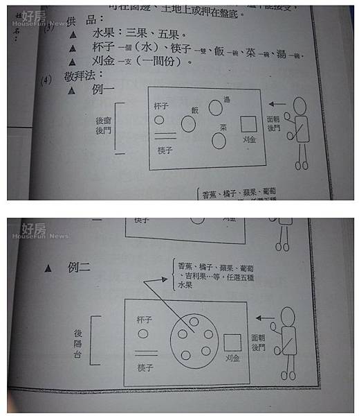只要在廚房後門擺設供品,向屋內祭拜即可。(方位是由外向內喔)如果沒有後門,那就從前門一樣向屋內祭拜也可!