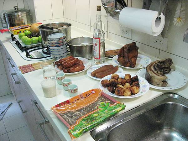 日常家裡飯菜(六菜 一湯)或「兩個機腿便當」祭拜,原則上要有飯、菜、肉、湯