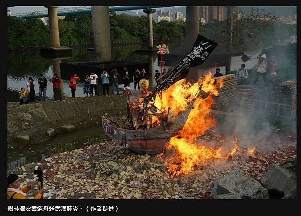 樹林濟安宮遣舟送武漢肺炎。(作者提供)