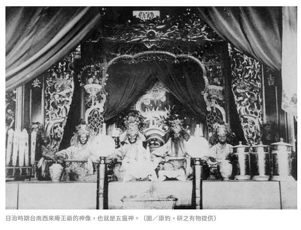 從福建移植到臺灣的瘟神信仰,反映著民間信仰的瘟疫觀念,五福大帝、五毒大神、溫元帥的敘事都可以追溯到中國南方關於瘟疫的共同記憶。傳說故事的細節或有差異,不變的是都講述祂們因故死亡,獲得封賞成為王爺,享有遊遍天下、受人供養,「遊府吃府,遊縣吃縣」的尊榮。但更多時候,臺灣人並非把王爺當作散播瘟疫的瘟神,而是認為王爺可以驅逐瘟疫。
