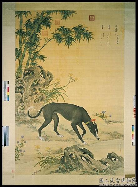 清郎世寧畫十駿犬墨玉螭 軸-數位典藏與學習聯合目錄(2200928) https://bit.ly/2Pn5SqO