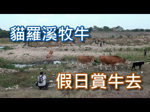 在貓羅溪畔的牛群,有黃牛、乳牛、水牛等,大牛帶著小牛覓食以及泡水消暑景象,顯得十分悠閒,尤其入冬以來,河床的芒花迎風搖擺,群牛掩沒其間,可比擬「風吹草低見牛羊」的塞北風光,群牛還會看水草生長情況,從這頭吃到那一頭,甚至渡越過溪流到對岸,如此規模的牛群場面,在台灣很難看得到。