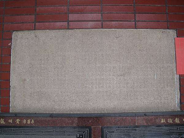 「圖九」咸豐七年(西元一八五七年)重修的碑銘,碑文係舉人鄭明蘭所撰,分鐫二石均瓏石,高61公分 、寬115公分 ,字跡尚明。內中前後兩次合捐善助芳名繁多,謹述碑文。