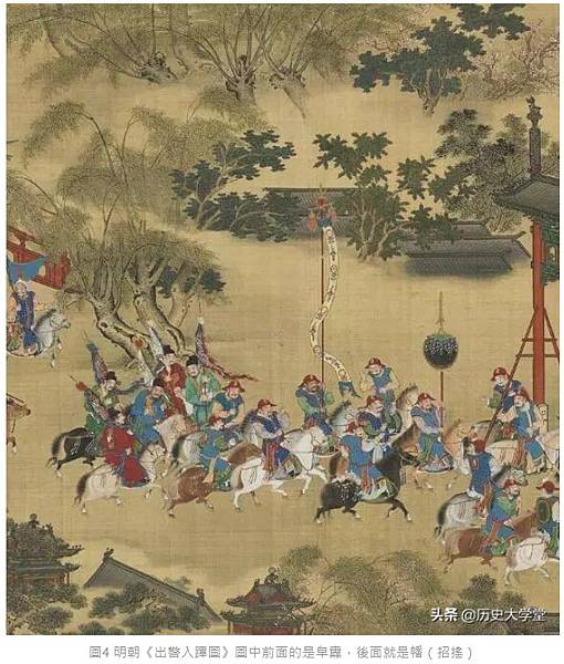 圖4 明朝《出警入蹕圖》圖中前面的是皁纛,後面就是幡(招搖)