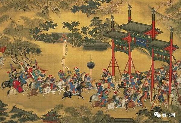 明入蹕圖中的五色纛,下一圖里皁纛的後面,就是幡(招搖):
