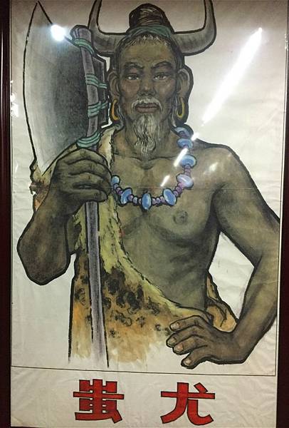 另外存疑一個:關於蚩尤的所謂軍神地位。從網上看,很多人把蚩尤說成主兵的軍神,我以為值得商榷,由於先秦禡祭的古俗已經不可細考,漢朝自己的各種說法又矛盾很多,歷史上後世又難免以訛傳訛,最後傳到本末倒置也不奇怪,我個人從一個側面看蚩尤做軍神與理不很通,上文提到黃帝斬蚩尤後以其頭髮做軍旗,其實就是拿蚩尤的腦袋綁在木杆上,建成軍旗皁纛,而旗纛是歷代禡祭的必備之物,歷代用軍神的腦袋祭祀,神祗又是黃帝,蚩尤作為的軍神體面在哪裏體現?漢朝的蚩尤刻像網上可以找得到,完全就是一副牛魔王的兇惡模樣,與石刻黃帝的文明人形象有巨大反差,很難把這個古人刻意醜化的形象與禡祭的莊嚴對照。禡祭古俗過程雖然缺失,漢以後歷代禡祭的形式也有不斷變化,但禡祭前後獻俘和殺戮番生的文字一直不少見,與黃帝殺蚩尤然後分肉給大家吃的行為似乎又是繼承關係。因此我個人覺得可能是禡祭中皂纛的蚩尤因素干擾,造成了蚩尤是軍神的誤解,真正的軍神其實是旗纛廟裏的黃帝。