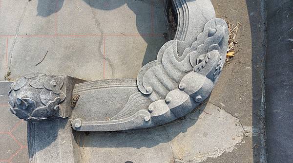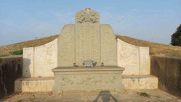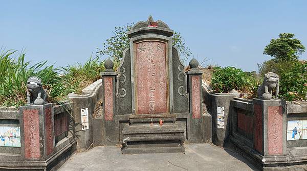 從上一張王得祿墓可以看出,傳統上墓碑頂端要做成比較突出,左右翅仔較低的造型。翅仔可以用石材,也可以用紅磚、灰泥來製作,也就是泥塑工法。前方還有墓桌,墓桌和翅仔都是用來固定墓碑的構件