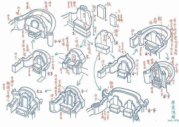 背牆式加上內宅的造型,這種造型在南山是主流。背牆與內宅環頂部的弧度一致,有重複的韻律之美。