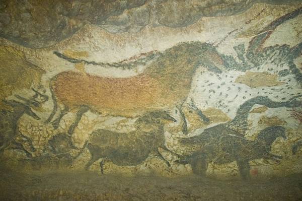 經考證,拉斯科洞穴的岩畫距今大約1.5萬年至1.7萬年,從洞頂到洞壁四周布滿了千餘幅以紅黃為主要基調的岩畫,而且出現了人類自身的形象,但是多以符號動物的形象展示,有野牛、野馬、鹿、猛獁像……野牛和野馬居多。這些動物大多是一萬多年前的大型史前動物,現在已不復存在。