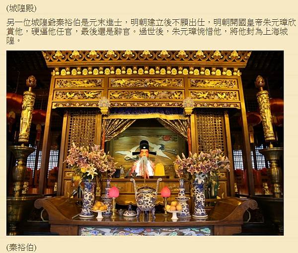 上海城隍廟正殿供奉的是另一位城隍神秦裕伯。
